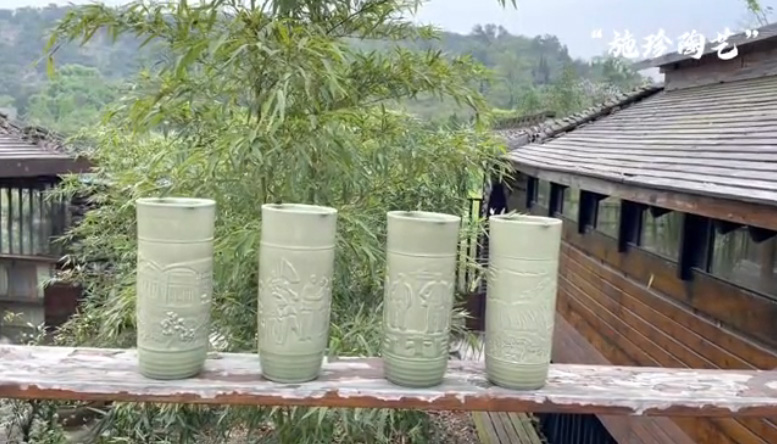 吕泉华青瓷刻瓷双耳瓶《白秋练》作品视频